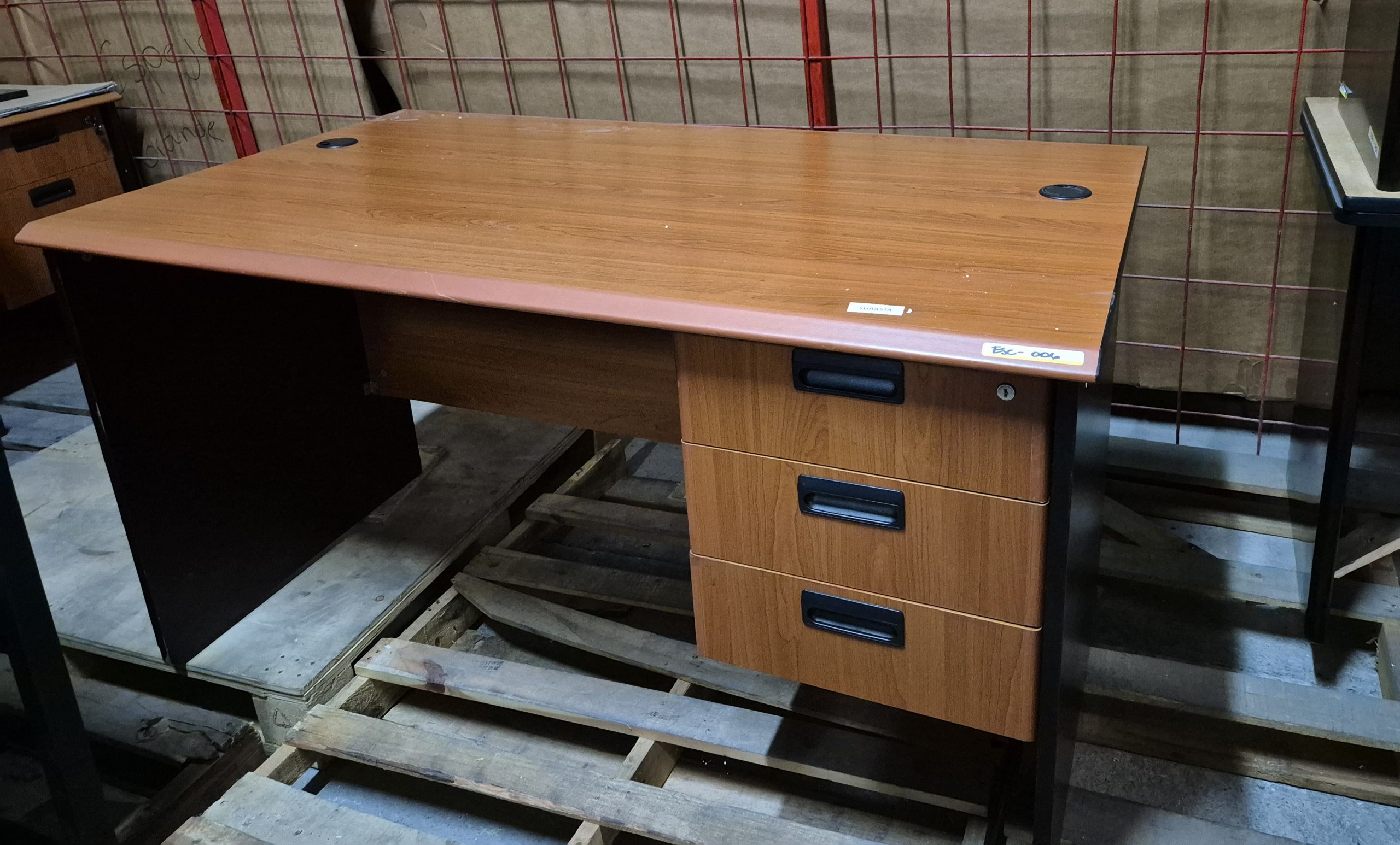 Escritorio color cerezo con negro tres gavetas en fibran