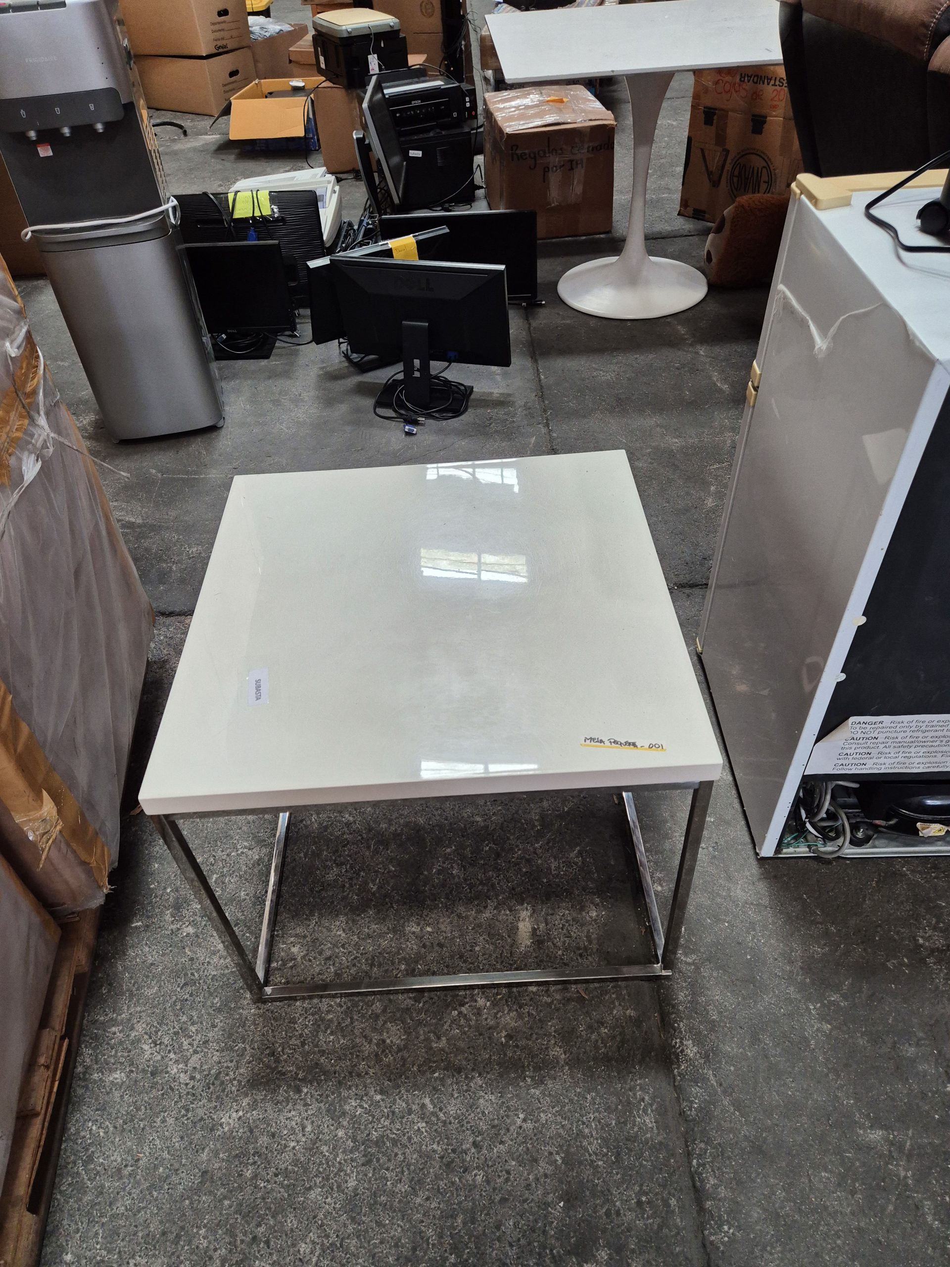 Mesa color blanco con patas cromadas