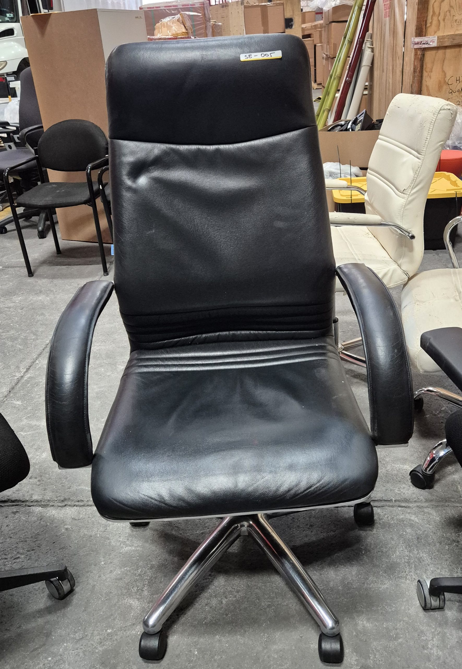 Silla Ejecutiva con forro de cuero y brazos color negro con estructura cromada