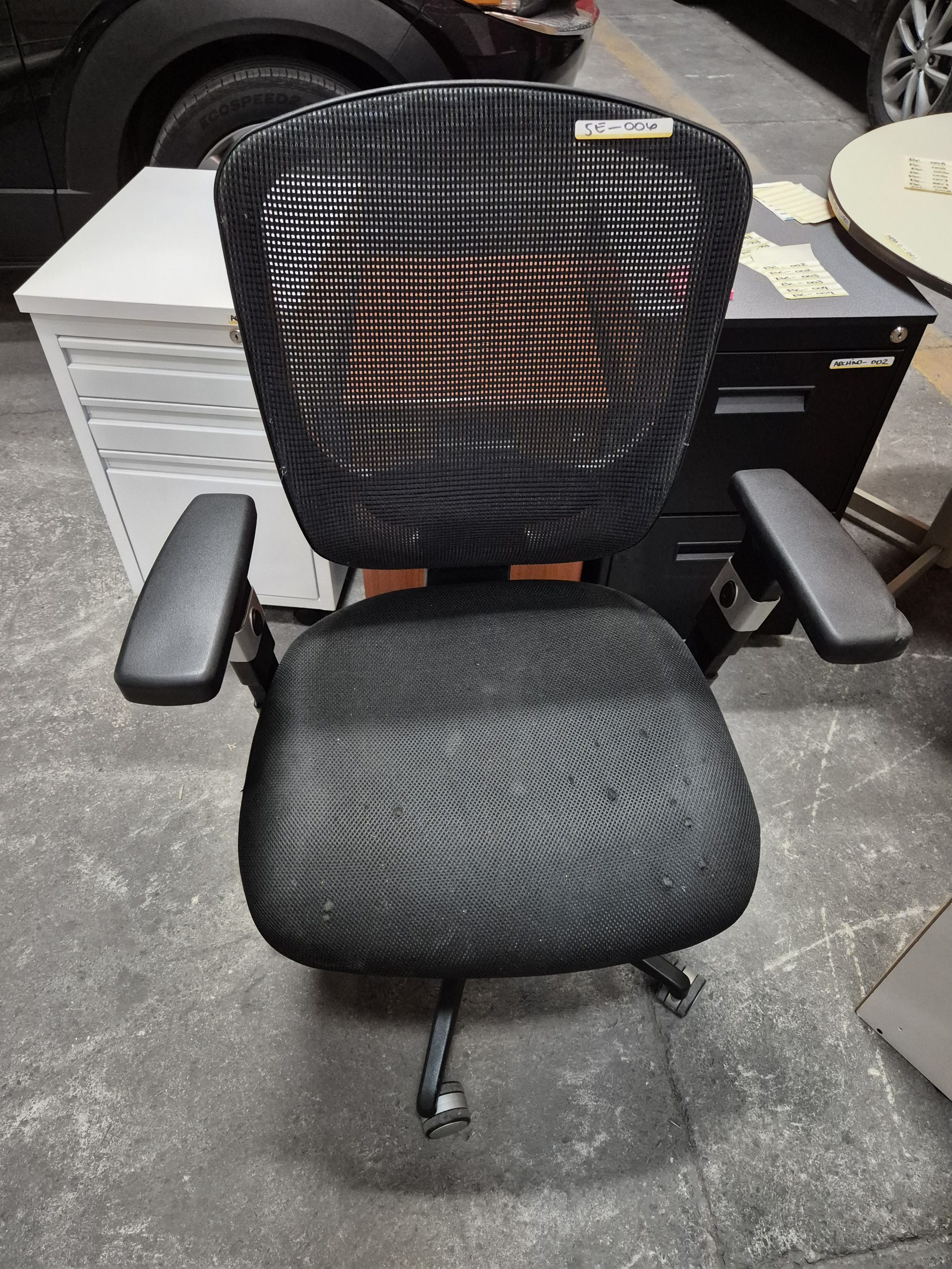 Silla ejecutiva color negro con respaldo de malla y brazos color negro