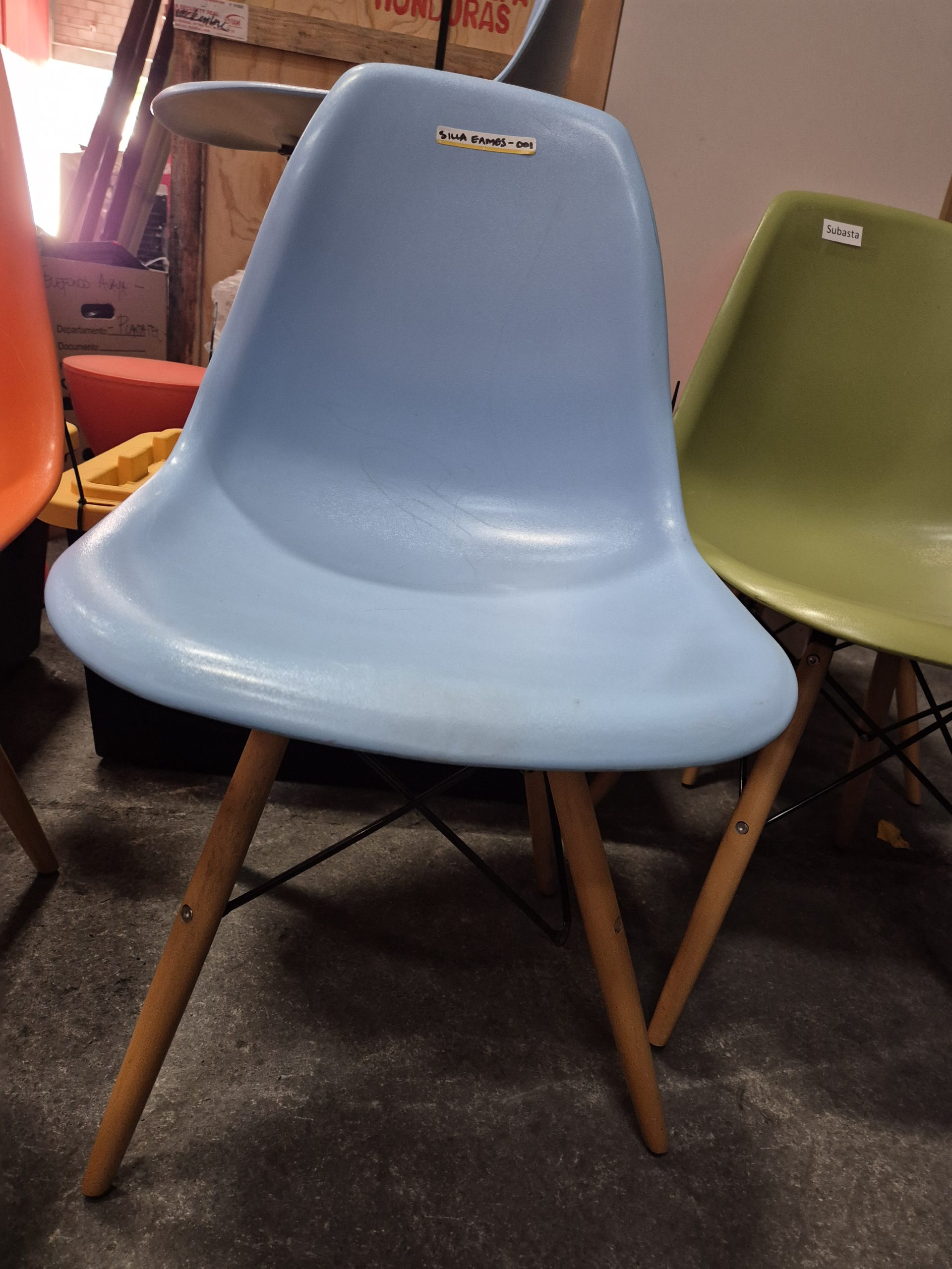 Silla de Espera plástica color azul con patas de madera